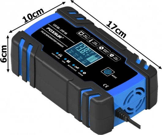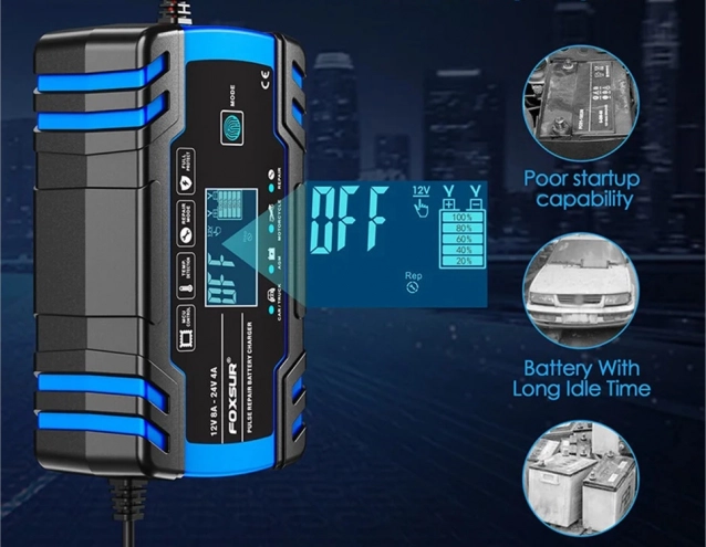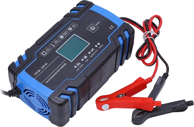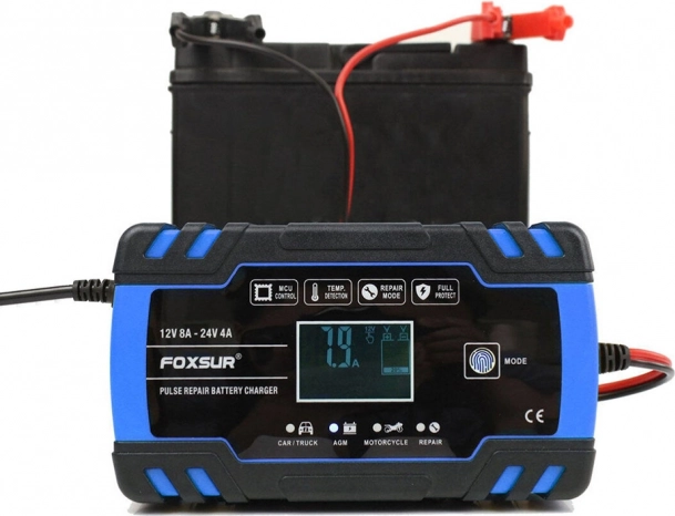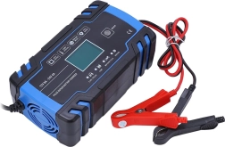 Kompaktowa i inteligentna ładowarka do akumulatorów 12V/24V z wyświetlaczem cyfrowym i trybem regeneracji. Zapewnia szybkie i bezpieczne ładowanie, oferuje tryb zimowy i letni, automatyczną ochronę oraz pulsacyjną regenerację do ożywienia słabych akumulatorów. Idealna do samochodów, motocykli i innych baterii pojazdowych.