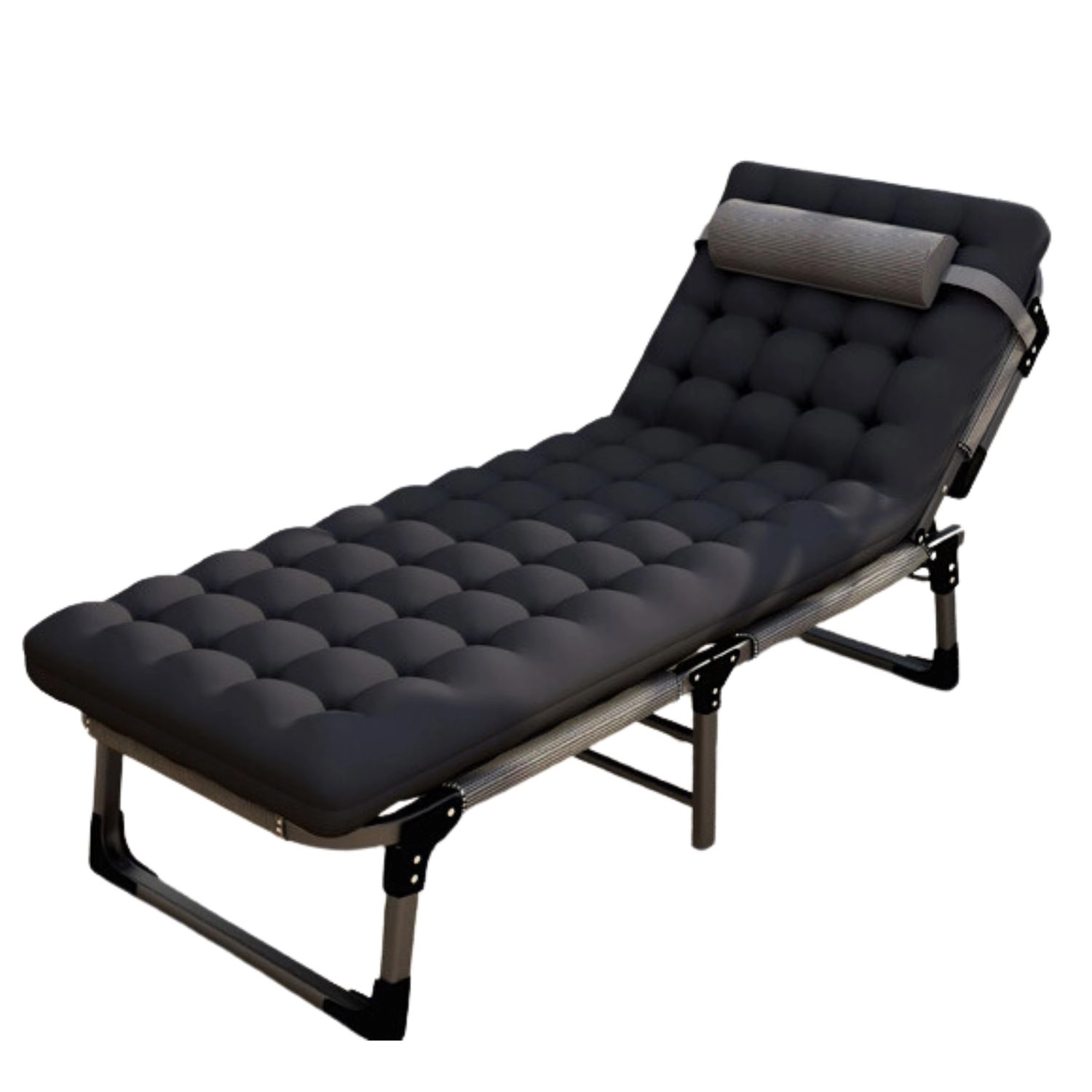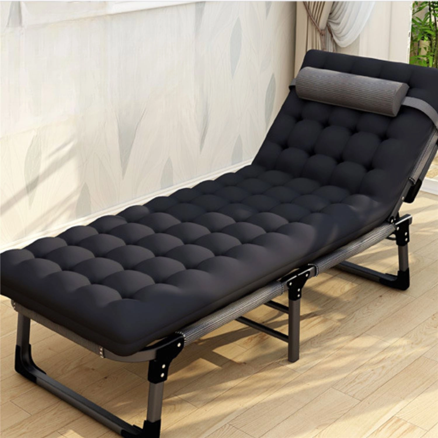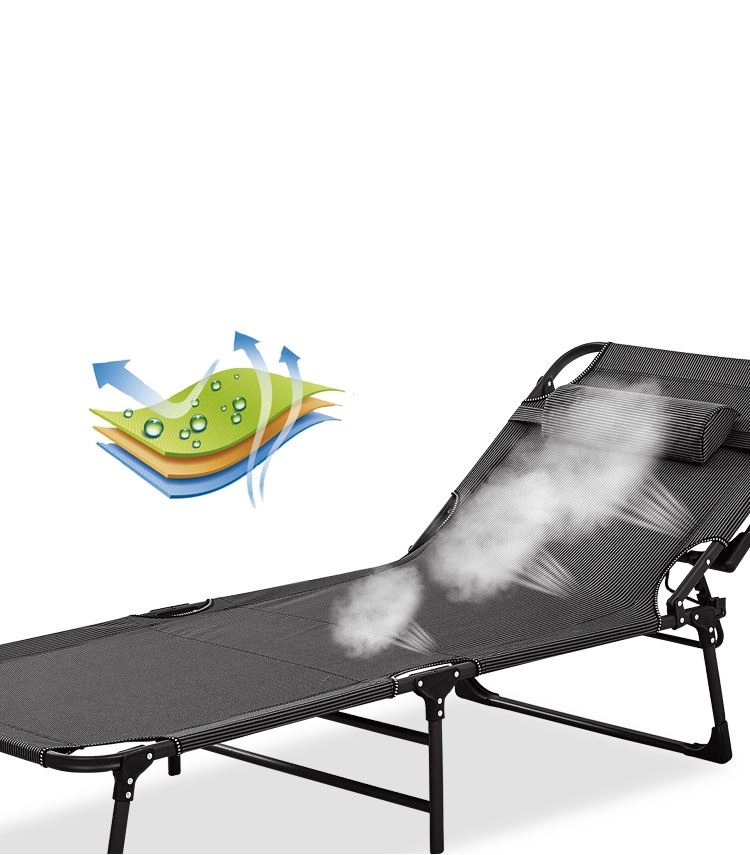 To składane leżanko idealnie sprawdzi się jako łóżko awaryjne dla gości, do relaksu w biurze oraz odpoczynku podczas biwakowania. Solidna stalowa rama z mechanizmem blokującym zapewnia wyjątkową stabilność bez niepożądanego kołysania, a oddychająca poszewka z tkaniny Oxford i grube wypełnienie z bawełny perłowej gwarantują wygodne leżenie.