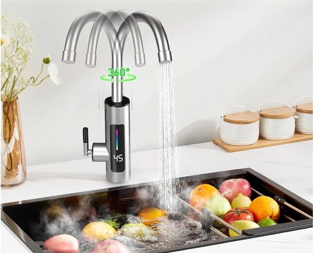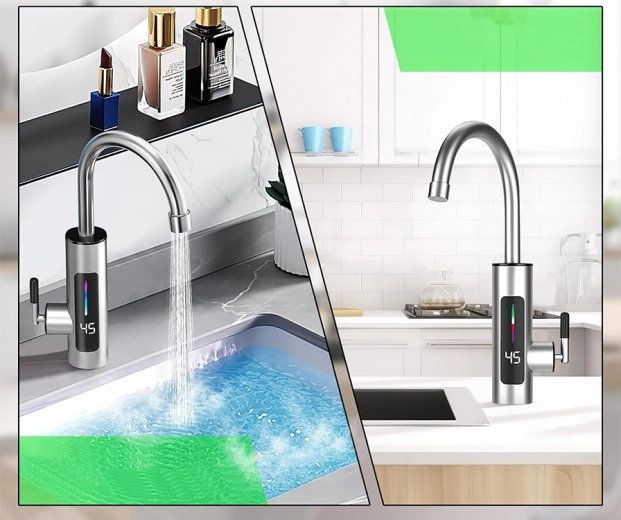 Elektryczny przepływowy podgrzewacz wody z wyświetlaczem LCD 3000 W – bateria kuchenna