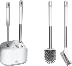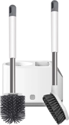 Uchwyt i szczotki są w eleganckiej kombinacji białej i szarej, co nadaje łazience nowoczesny wygląd, jednocześnie zapewniając łatwe użycie i przechowywanie.