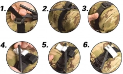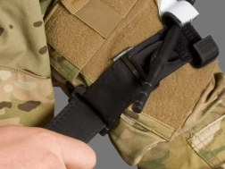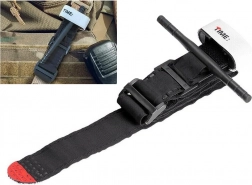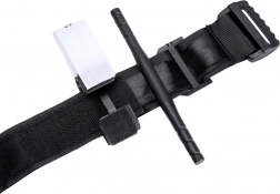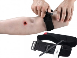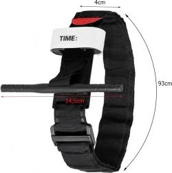 Rozciągnij stazę i umieść ją wokół kończyny powyżej miejsca krwawienia. Mocno zaciśnij pasek i zabezpiecz klipsową pałeczką.