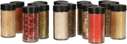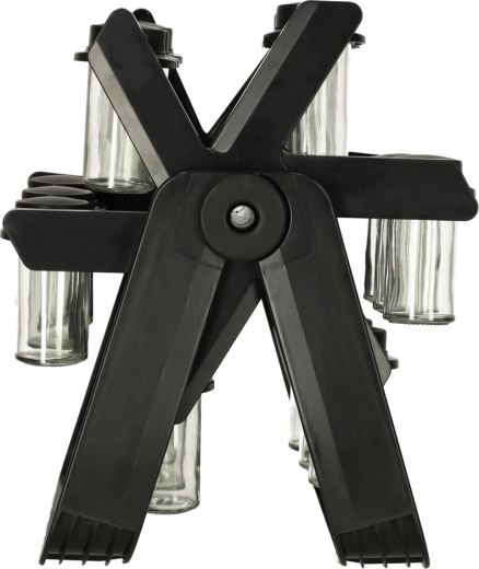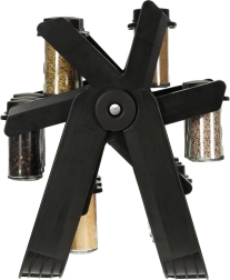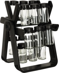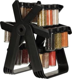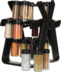 Zawiera 18 szklanych pojemników, które utrzymują przyprawy świeże i łatwo dostępne.
