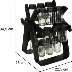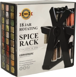 - Praktyczna organizacja: Zawiera 18 szklanych pojemników, które utrzymują twoje przyprawy świeże i łatwo dostępne.