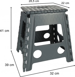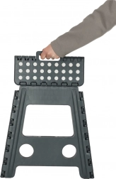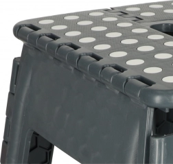 Ten składany stołek to idealny pomocnik do kuchni, łazienki, warsztatu i pokoju dziecięcego. Solidny plastik i antypoślizgowe wykończenie górnej powierzchni zapewniają pewny krok i wygodne użytkowanie. Po złożeniu stołek ma kompaktowe wymiary, więc łatwo schowasz go do szafy lub za drzwi.