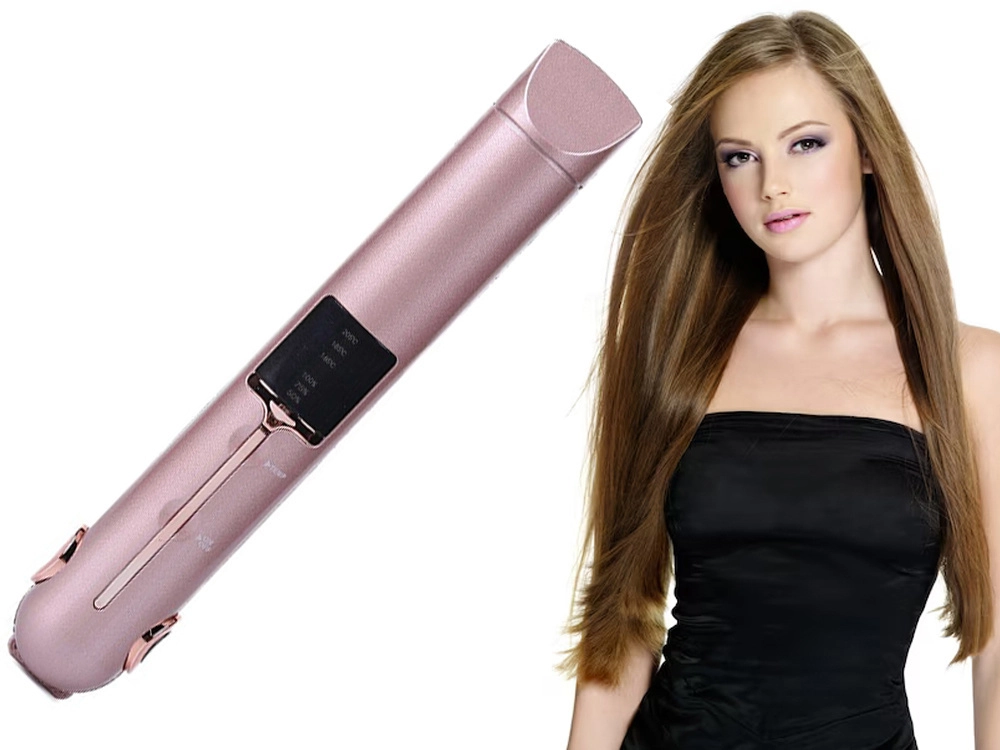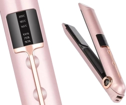 Kompaktowa bezprzewodowa prostownica do włosów z ceramicznymi płytkami i wyświetlaczem LCD do szybkiej i delikatnej stylizacji gdziekolwiek jesteś. Oferuje 3 poziomy temperatury 165/185/205 °C, szybkie nagrzewanie, uniwersalny styling 2w1 (prostowanie i fale) oraz praktyczną funkcję powerbanku do doładowania telefonu. Idealna w podróży dzięki ładowaniu USB‑C i kompaktowym wymiarom.