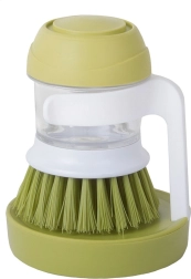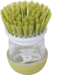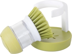 Ułatw sobie codzienne mycie naczyń. Szczotka z wbudowanym dozownikiem płynu podaje środek bezpośrednio podczas szorowania – wystarczy nacisnąć górny przycisk. Ergonomiczny kształt dobrze leży w dłoni, a gęste, sztywne włosie poradzi sobie z garnkami, patelniami i zaschniętymi plamami.
