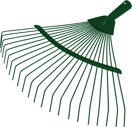 Elastyczne druciane zęby w kształcie wachlarza niezawodnie chwytają liście, igliwie oraz drobne nieczystości na trawniku.