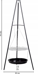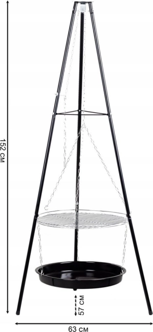 Dzięki swojej stabilnej trójnożnej konstrukcji grill jest bezpieczny i odpowiedni do użytkowania na zewnątrz, zarówno w ogrodzie, jak i na campingu.