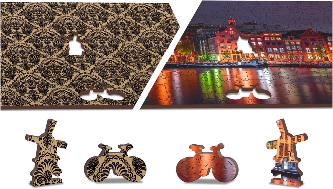 Każdy element jest częścią całości, ale ma także swój własny unikalny kształt przedstawiający miejskie budowle, zwierzęta lub przedmioty. Układanie jest tym samym bardziej wymagające, co przyczynia się do większej rozrywki i wyzwania. Puzzle zdobi również bogata sceneria Amsterdamu w nocy, która jest perfekcyjnie wyryta w każdym elemencie.