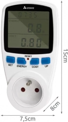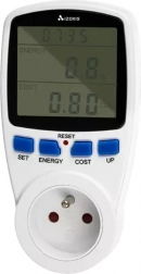 Inteligentny miernik zużycia energii pomoże wykryć wymagające urządzenia i zoptymalizować zużycie w domu lub biurze. Dzięki przejrzystemu wyświetlaczowi LCD widzisz napięcie (V), prąd (A), częstotliwość (Hz), moc bieżącą oraz minimalną i maksymalną (W), pobraną energię (kWh), a po wprowadzeniu taryfy także dokładne koszty.