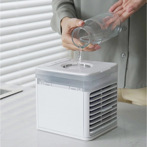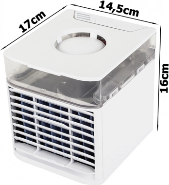 Mini klimatyzacja to urządzenie, które jest świetne na słoneczne dni w domu lub w pracy. To małe urządzenie potrafi znacznie obniżyć temperaturę w pomieszczeniu. Dzięki swoim małym wymiarom można je umieścić na stole, szafie lub biurku. Klimatyzacja jest wyposażona w lekkie kolorowe oświetlenie, które świeci zmieniającymi się kolorami.