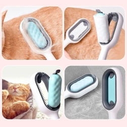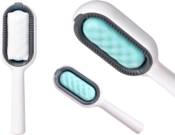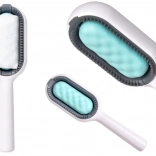 Druga strona szczotki z drobnymi ząbkami łatwo ściąga włosy i kłaczki z ubrań, sof czy dywanów, nie uszkadzając ich.