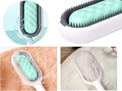 Silikonowa poduszeczka pozwala użyć wilgotnej ściereczki i podczas czesania od razu spłukiwać sierść. Zbieranie luźnych włosów jest szybsze i czystsze.