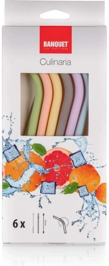 Ten zestaw zawiera sześć silikonowych słomek w pastelowych kolorach z dołączoną szczoteczką dla łatwej pielęgnacji.