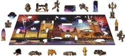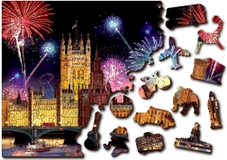 Puzzle oferują dwie możliwości układania - według obrazka Nocnego Londynu lub według powtarzającego się wzoru na tylnej stronie.