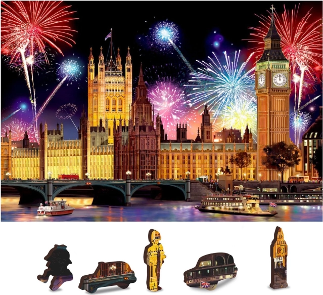 To drewniane puzzle oferują niezapomniane chwile zabawy dzięki swojemu dwustronnemu designowi, który umożliwia układanie według obrazka i kształtu. Z unikalnie kształtowanymi elementami przedstawiającymi znane londyńskie budowle, przedmioty lub zwierzęta, te puzzle są trudniejsze do ukończenia, co zwiększa radość z udanego złożenia.