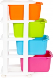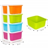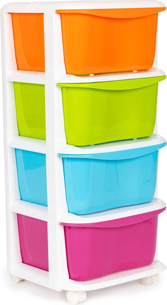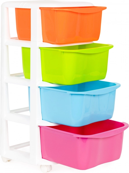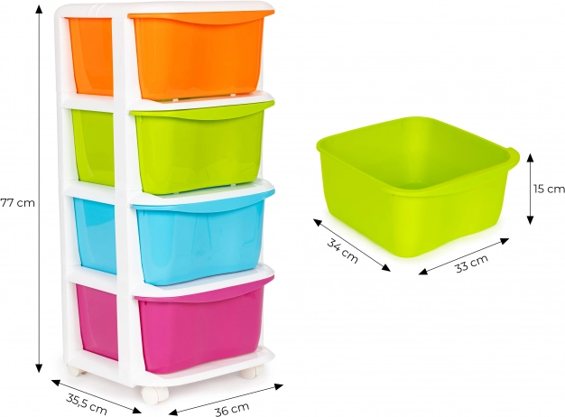 Organizer na kółkach oferuje funkcjonalne i praktyczne rozwiązanie do łatwego porządkowania rzeczy. Nadaje się szczególnie do pokoi dziecięcych lub łazienek.