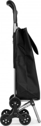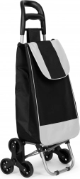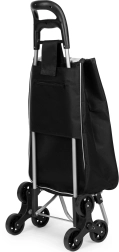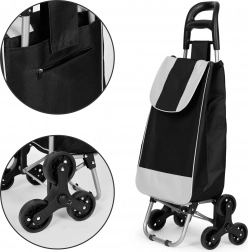 Wózek jest wyposażony w potrójne gumowe koła do łatwego pokonywania przeszkód, takich jak krawężniki czy schody, co umożliwia prosty transport zakupów z minimalnym wysiłkiem.
