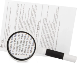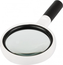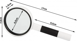 Praktyczna ręczna lupa o średnicy soczewki 65 mm i powiększeniu 6× do wygodnego czytania drobnego druku oraz dokładnej kontroli przedmiotów. Lekka i wytrzymała konstrukcja z antypoślizgową rękojeścią, przezroczystą szklaną soczewką oraz czarno-białym wykończeniem do uniwersalnego użytku w domu, biurze i warsztacie.