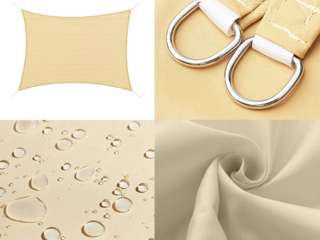 Stwórz przyjemny cień na tarasie, w ogrodzie lub na balkonie dzięki prostokątnej płachcie przeciwsłonecznej 4 × 3 m. Wytrzymała tkanina poliestrowa zapewnia skuteczną ochronę przed promieniowaniem UV, jest wodoodporna, a dzięki wzmocnionym rogom i metalowym pierścieniom D łatwo i bezpiecznie się montuje. Elegancki beżowy kolor i nowoczesny design pasują do każdej przestrzeni zewnętrznej.