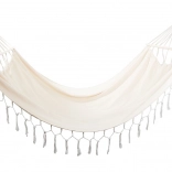 Przewiewna i wytrzymała tkanina jest przyjemna w dotyku i odporna na codzienne użytkowanie. Dzięki dekoracyjnym frędzlom Twoja przestrzeń zyska przytulny akcent boho, który świetnie współgra z naturalnym otoczeniem.