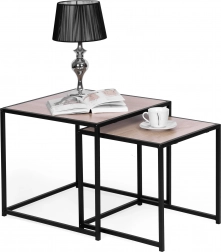 Prosty design w stylu loftowym sprawia, że stoliki doskonale sprawdzą się zarówno w nowoczesnych, jak i klasycznych wnętrzach.