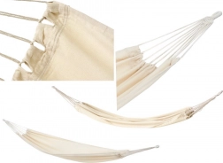 Ciesz się relaksem na świeżym powietrzu w komfortowym hamaku z odpornej tkaniny. Dzięki mocnej bawełnie z domieszką poliestru, maksymalnemu udźwigowi 200 kg oraz praktycznej torbie idealnie sprawdzi się w ogrodzie, na tarasie i w podróży. Łatwo go zawiesisz za pomocą dołączonych linek, a po użyciu szybko zwiniesz do kompaktowego pokrowca.