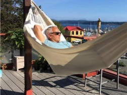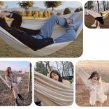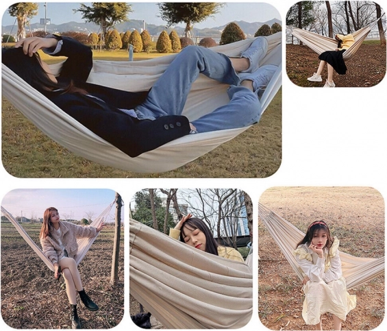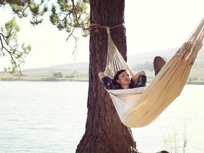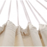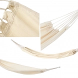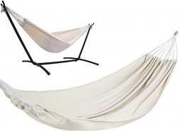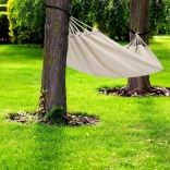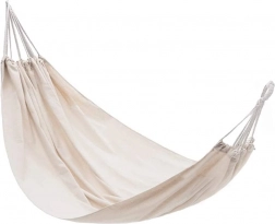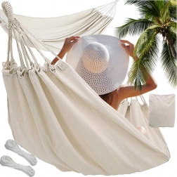 Ten przestronny hamak zapewni Ci świetne miejsce do relaksu po pracy i weekendowego wypoczynku. Przewiewna płócienna tkanina przyjemnie otula ciało, a jednocześnie jest wystarczająco mocna i stabilna. Dzięki kompaktowemu pokrowcowi i niskiej wadze hamak łatwo zabierzesz na działkę, nad jezioro lub do parku.