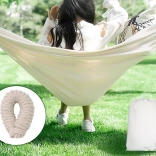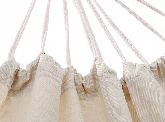 Montaż to pestka – wystarczy przywiązać oba końce do drzew, słupków lub haków. Gęsto tkane linki zawieszenia równomiernie rozkładają ciężar, co zwiększa komfort i trwałość. Materiał można prać w pralce, więc utrzymanie czystości jest proste.