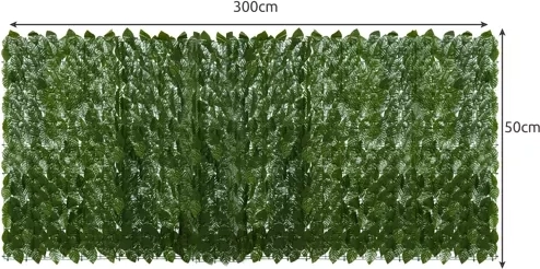 Ten sztuczny bluszczowy żywopłot jest idealny jako osłona wzrokowa na balkon, taras lub ogrodzenie. Realistyczny efekt liści wniesie do przestrzeni zewnętrznej przyjemną zieleń bez trosk – bez podlewania, nawożenia i przycinania. Konstrukcja z wysokiej jakości materiałów jest odporna na warunki pogodowe i łatwa w utrzymaniu czystości.