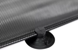 Montaż zajmuje chwilę: trzy przyssawki i haczyk trzymają roletkę pewnie na szybie, bez wiercenia i klejenia. Dzięki automatycznemu zwijaniu wystarczy nacisnąć przycisk, a roletka zwinie się sama. Do szyb pod skosem w dolnej części znajduje się przyssawka dla dodatkowego zabezpieczenia, aby roletka nie przeszkadzała podczas jazdy.
