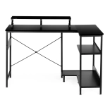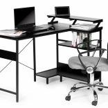 Dwie boczne półki utrzymują wszystko w zasięgu ręki, a regulowane stopki niwelują nierówności podłogi, aby biurko zawsze było stabilne.