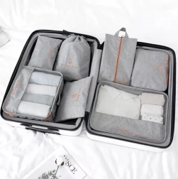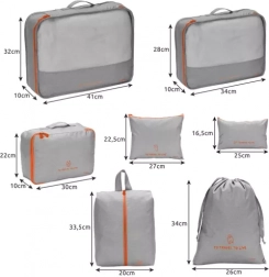 Siedmioczęściowy zestaw umożliwia efektywne ułożenie rzeczy w walizce lub pokoju hotelowym. Podziel swoje rzeczy według potrzeb i zyskaj łatwy dostęp do wszystkich przedmiotów.