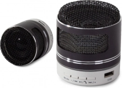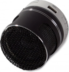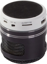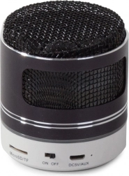 Kompaktowy bezprzewodowy głośnik z technologią Bluetooth odtwarza muzykę z telefonu, USB lub karty microSD, oferuje czysty dźwięk, radio FM, wejście AUX oraz praktyczne podświetlenie LED.