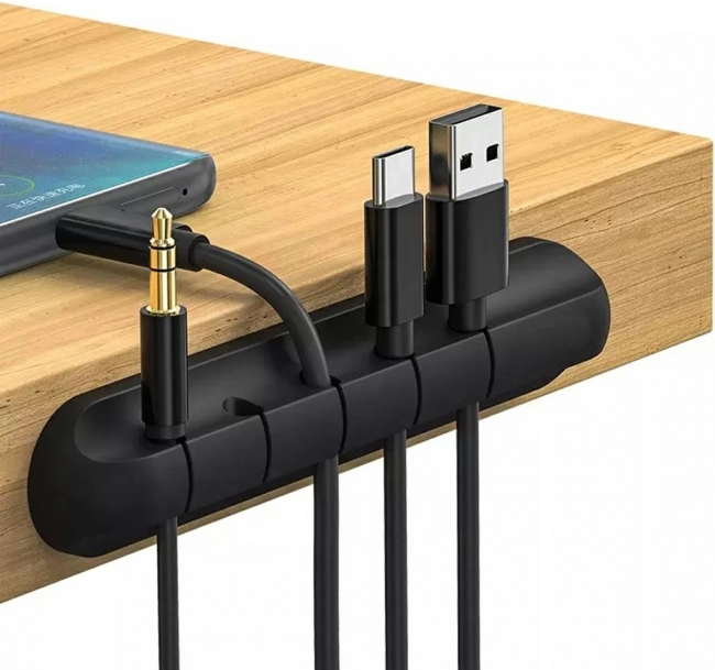 Samoprzylepny wieszak służący jako organizer na maksymalnie 5 kabli. Przeznaczony do montażu na krawędzi stołu lub blatu roboczego. Zapobiega plątaniu się kabli i ułatwia ich przejrzyste uporządkowanie. Jest bardzo solidny – po przyklejeniu doskonale przylega do powierzchni dzięki mocnemu klejowi.