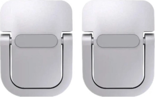 Srebrne podstawki pod laptop – dwie aluminiowe podpórki do pracy na laptopie w lekko nachylonej pozycji.
