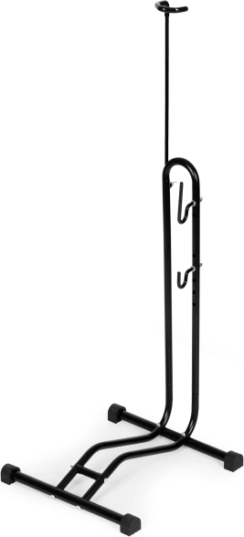 Antypoślizgowe nóżki zapewniają stabilność i ochronę podłogi, stojak chroni rower przed upadkiem.