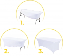 Bez pomocy, w kilku prostych krokach, możesz samodzielnie założyć pokrowiec. Nałóż go na stół, naciągnij rogi i przymocuj do nóżek.
