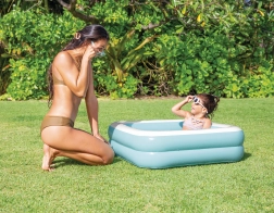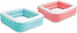 Spraw dzieciom radość własnym basenem, który przygotujesz w kilka minut. Kwadratowa konstrukcja z wyższą krawędzią jest stabilna i wygodna, a nadmuchiwane dno amortyzuje uderzenia i zwiększa komfort podczas siedzenia i zabawy. Dzięki kompaktowym rozmiarom basen jest idealny dla maluchów i przedszkolaków.
