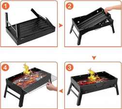 Rozkoszuj się beztroskim grillowaniem z tym przenośnym składanym grillem. Jego kompaktowy design, który łatwo złożysz do walizki, pozwala na łatwy transport i oszczędność miejsca. Wysokiej jakości materiały gwarantują odporność na warunki pogodowe, więc jest odpowiedni do użytku przez cały rok.