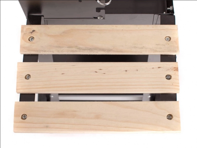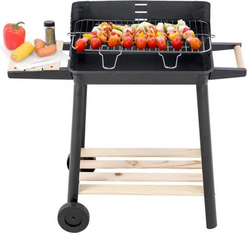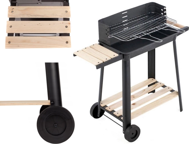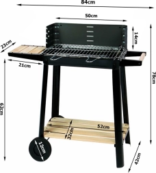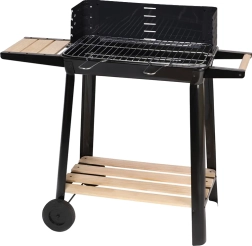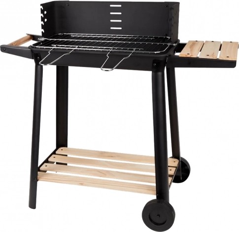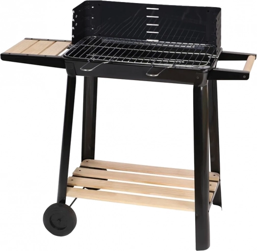 Grill wyposażony jest w regulowany ruszt, który można ustawić na pięciu różnych poziomach, co pozwala na idealne przygotowanie potraw według własnych preferencji. Drewniane półki po bokach zapewniają wystarczającą przestrzeń do przygotowania.