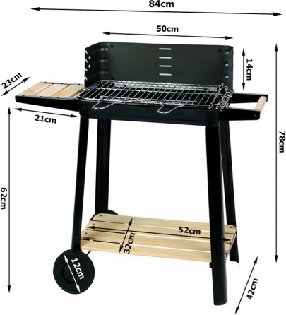 Z kółkami dla łatwego przemieszczania, ten grill jest idealnym wyborem na każdą letnią imprezę czy relaks z rodziną lub przyjaciółmi. Montaż jest prosty i szybki, co pozwala spędzać więcej czasu na gotowaniu, a mniej na przygotowywaniu.