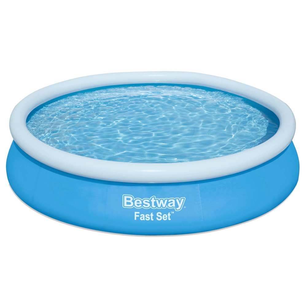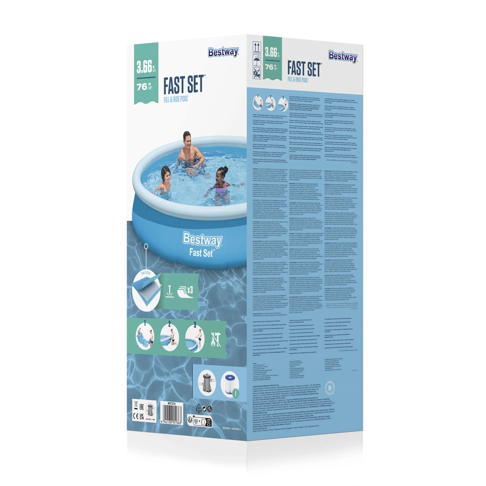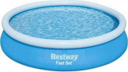 Dmuchany, naziemny basen BESTWAY Fast Set to idealny wybór do szybkiego orzeźwienia w ogrodzie. Montaż zajmuje zaledwie kilka minut – pompujesz górny pierścień, odkręcasz wodę, a ściany same unoszą się wraz z poziomem wody. Dzięki solidnemu materiałowi z wytrzymałą powłoką przetrwa codzienne rodzinne wodne zabawy.