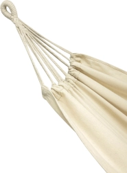 Solidna konstrukcja: Dzięki zastosowaniu wysokiej jakości bawełny i poliestru, huśtawka jest niezwykle wytrzymała i zapewnia nośność do 120 kg. Po złożeniu zajmuje niewiele miejsca i łatwo je przechowasz za pomocą dołączonego pokrowca.