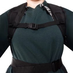 Wyściełane szelki, regulowany pas piersiowy oraz szeroki pas biodrowy stabilizują plecak i równomiernie rozkładają obciążenie.