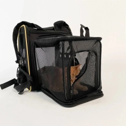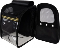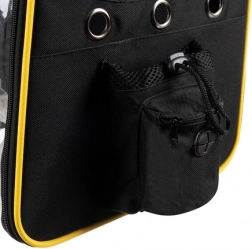 Przezroczysta przednia osłona z otworami wentylacyjnymi oraz panele siateczkowe po bokach i na górze zapewniają pupilowi widok i stały dopływ świeżego powietrza.