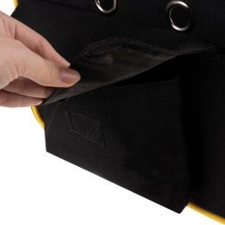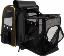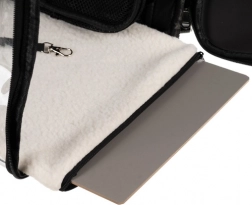 Wyjmowana miękka wkładka ze wzmocnionym dnem oraz wewnętrzny karabińczyk bezpieczeństwa zapewniają wygodę i ochronę zwierzęcia podczas podróży.