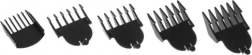 Zestaw pięciu grzebieni prowadzących pozwala wybrać żądaną długość i osiągnąć spójne rezultaty podczas domowego strzyżenia i stylizacji.