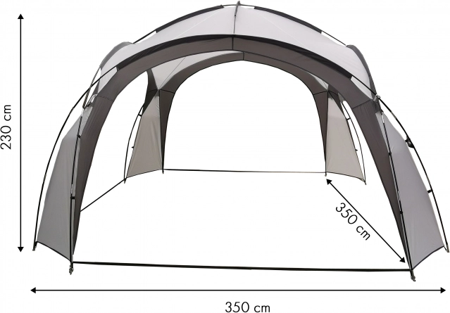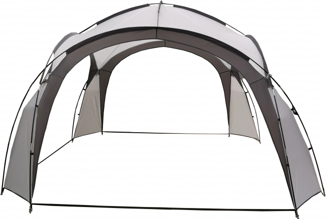 Stwórz niezawodne zaplecze na rodzinne uroczystości, grillowanie i wydarzenia sezonowe. Ten elegancki pawilon w szarym kolorze łączy lekkość, stabilność oraz odporność na warunki atmosferyczne. Otwarta konstrukcja zapewnia świetny przepływ powietrza, a profilowane łuki skutecznie odprowadzają wodę deszczową na boki.