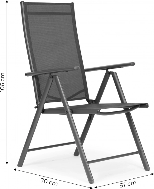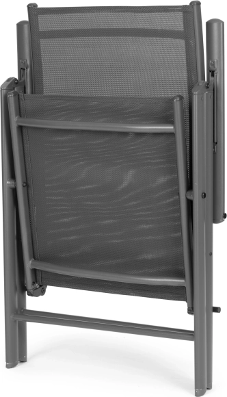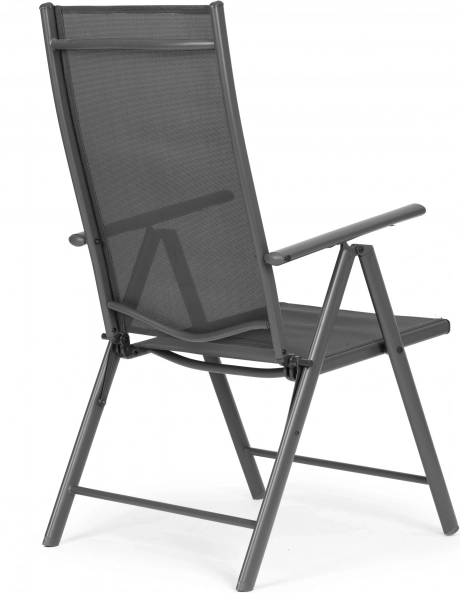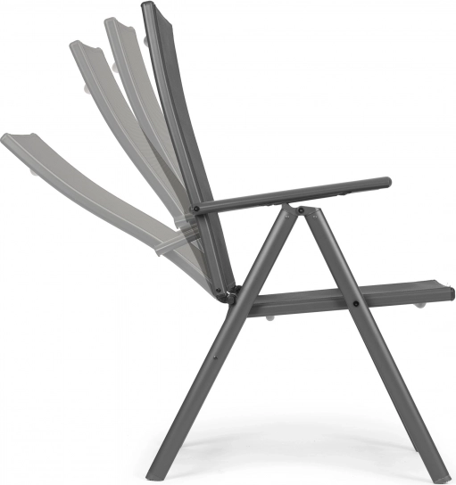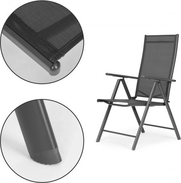 Odpoczywaj na zewnątrz, kiedy tylko chcesz. Te składane krzesła z 7-stopniową regulacją oparcia pozwolą wybrać idealną pozycję – od wyprostowanego siedzenia przy stole po relaks z książką. Solidna, stalowa rama malowana proszkowo gwarantuje stabilność i długą żywotność, a textilene dopasowuje się do ciała i świetnie wentyluje.